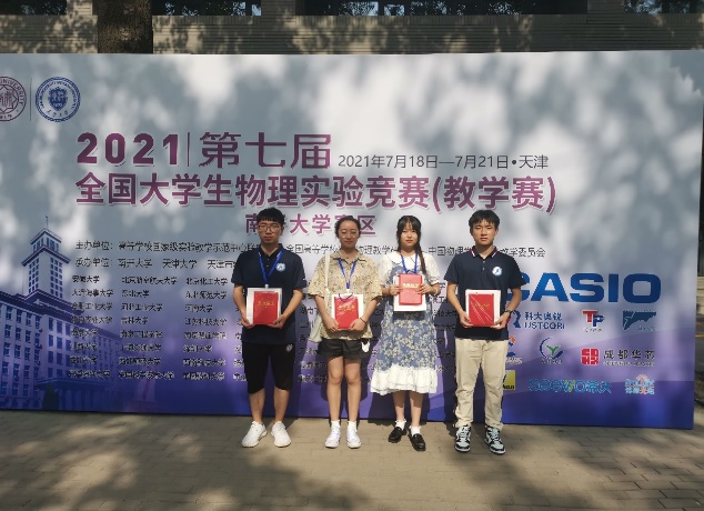 近日,由高等学校国家级实验教学示范中心联席会、全国高等学校实验物理教学研究会、中国物理学会物理教学委员会主办,南开大学、天津大学和天津市物理学会承办的第七届全国大学生物理实验竞赛(教学赛)在天津成功举办。我院19级光电信息科学与工程专业周立佳,19级应用物理专业马佳昱、叶宗桓和韩昀晓四位同学参加了该项赛事。经过激烈角逐,最终在基础类实验、综合类实验中,取得了三等奖的好成绩,实现了我校在该赛事项目上的获奖突破。