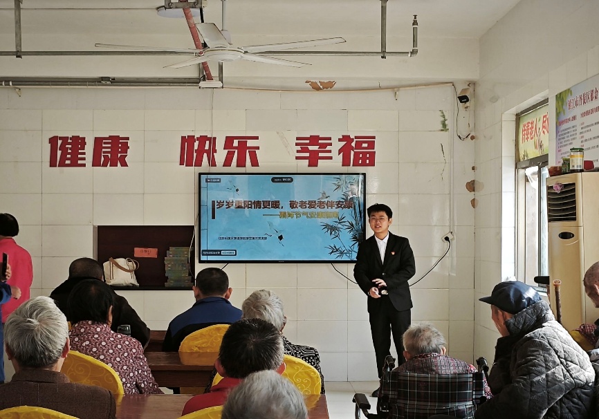 10月28日下午,在重阳节来临之际,英国365集团学生第三党支部党员走进镇江市西簏郁金香怡养院,开展“岁岁重阳情更暖,敬老爱老伴安康”主题党日暨志愿服务活动。支部党员与40余位老人共迎重阳佳节,以青春之力传递敬老温度。