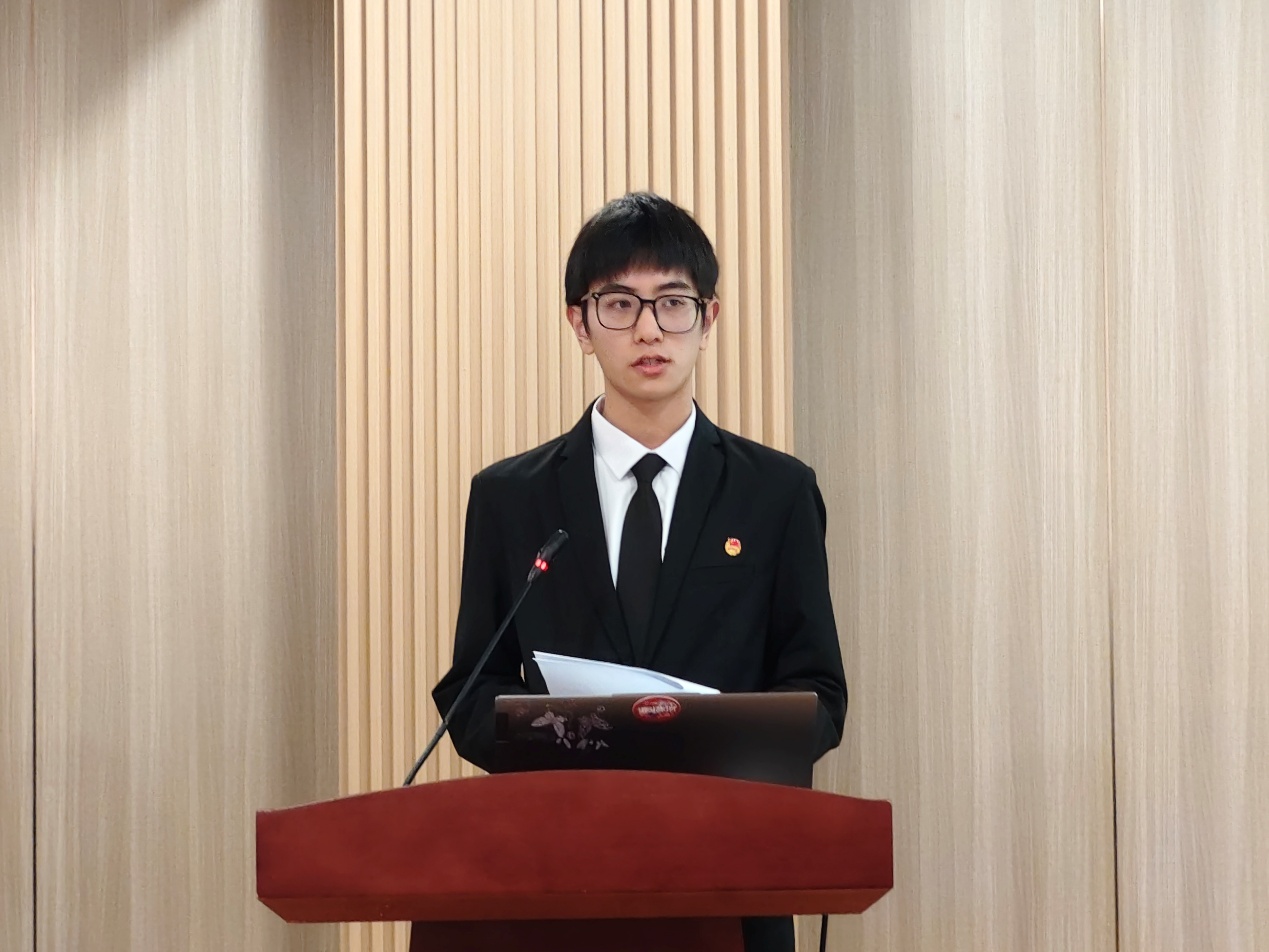 图 7新一届学生会主席团代表崔羿晟发表就职演讲